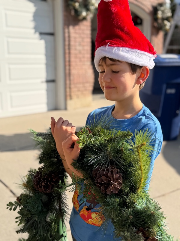 I’m not buying into a real elf on the shelf, but I did surprise him with elf pajamas. His imagination is beautiful.