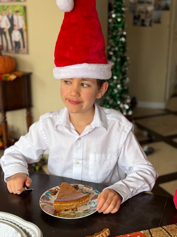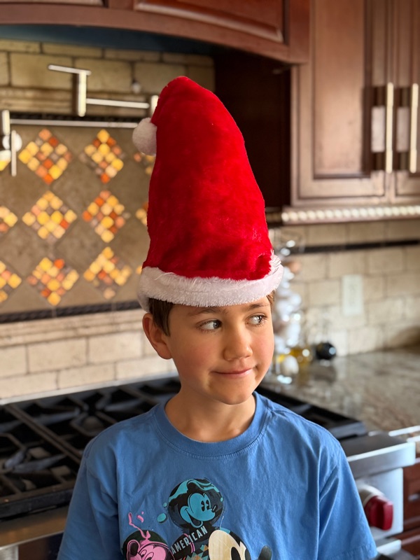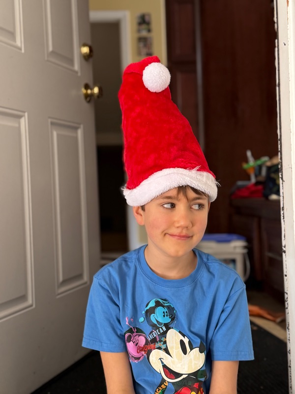 He keeps asking us if a candy cane is mostly red with white stripes or mostly white with red stripes?! π who thinks of that?